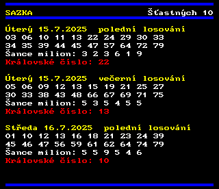 Stastnych 10 Vysledky Navod Cena Vsadit Online Losovani