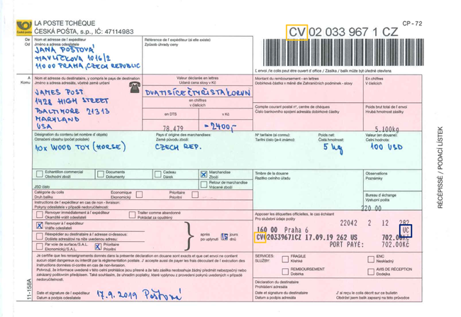 C R Smisena Frankatura Expres Doporucene Do Vlastnich Rukou