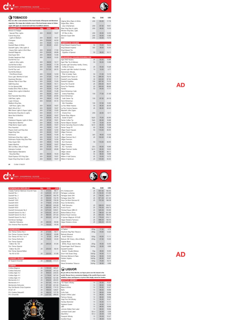 Dubai Duty Free Price List Scotch Whisky Cigar